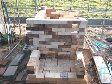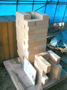 違う角度から見た感じ。 手前に火袋を作って、窯の中に火盾も作って登窯風にしようか、いやいや、ロストルも作って灰被りが出来るようにしようか...と。