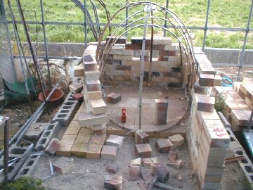 大体の窯の形が決まり、後はレンガを積んでいくだけだ。