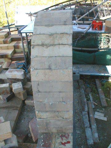 何回も失敗して、それを壊し、水分が抜けて結構キツイ作業のレンガに付いているモルタルを削り取り、又塗り直して積み上げる。
