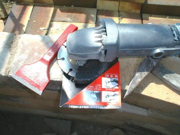 今回、順調に進んだ訳は、この道具でした。(タガネ、グラインダーの歯、電気コード20mで、7120円)