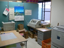 | メールボックス | 印刷室。ここでは 横断幕を作る機械が人気 |
