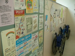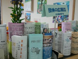 | 各団体の活動状況を手に取れる | 事務所前には各種チラシが並ぶ | |