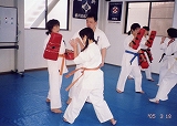 ママさんに入って未だ数える程しか練習はしていませんが本部道場でジムを週1回1時間ぐらいですがやりだして1年余り立ちました。その間に回りの人達が空手をしているせいもありましたし年齢的にも体の代謝が鈍ってきているのが凄く感じて入門しました。若い先輩の指導を受けて体も心も若く保ちましょう(笑い)これから、始めてみようと思っているママさん達私達と一緒に汗を流しませんか!!