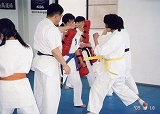 育児、主人の転勤等でかなりのストレスをかかえていた頃、偶然新聞広告で見た私はストレス解消が出来ると思い、入門しました。ママさんクラスの人達は指導員をはじめ皆とても優しく和気藹々と稽古をされていて、何も知らない私にとっても親切に教えていただきました。今までの人生の中で「蹴る」「突く」事などありませんでしたが桑島道場のママさんクラスに入門してパンチ、蹴りの稽古をする事により、ストレス解消が出来ました。今ではすっかり空手にはまっています。
