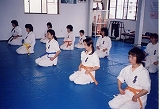 黙想から始まり黙想で終る・・・(黙想→基本稽古→移動・型稽古→ミット→補強→黙想) |