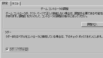 ここでラダーを使用するなら「ラダー/ペダル」にチェックを入れて「調整」をクリックします。 |