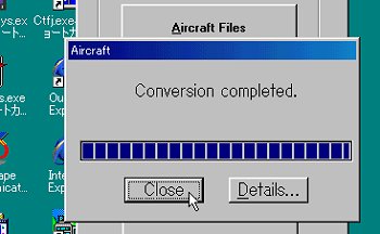 これはFS95用の機体ですので、コンバートします。 FS5用の機体も同じ方法です。 前のページで説明しましたように、ファイルを選択します。 そして、Extractをクリック。 |