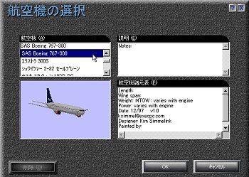 FS98の画面から「航空機の選択」で画面にでてきます。 |