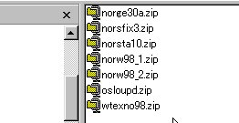 ノルウェーのファイルはFlightsim.comからも入手できますが、左の画面の数だけいろいろなデータがあります。 基本のシーナリーは、norw98_1.zipとnorw98_2.zipの二つです。データが大きいので二つのファイルに分かれています。 インストールする前にnorw98_1.zipの中のnorw98do.zipの中にinstall.htmというファイルがありますのでそこを見ると(WIN.ZIPで開いていき、ファイルをダブルクリックすると見えます)インストールの仕方が載っています。 |