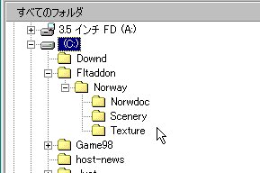 | 最新のNORWAY98のシーナリーのダウンロードファイルは、norw98 1〜5.zipとnorw98tx.zipとに変わっていて、自動的にインストールできるようになっています。できあがったフォルダの構成は下記と同じようになりますが、norw98tx.zipの方をインストールするときは、ご自分のFS98のメインのtextureフォルダに入るようにパスを指定してください。 |