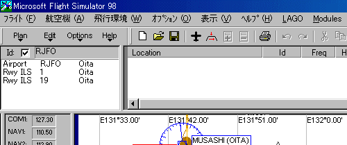 <SATA TWO DEPARTURE(サタ2ディパーチャー)> 大分空港R/W19を離陸後左旋回(01なら離陸後右旋回)、武蔵VOR/DMEのラジアル131度をサタビクター(SAV)に向かう。 ということで、まずsatah(sav) を入れます。 |
