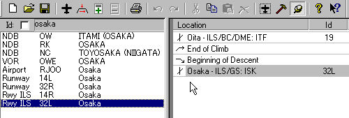 D同じようにして、目的地の大阪空港32Lを入れます。 これで、まず出発空港と目的地の空港が入りました。 |