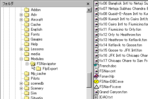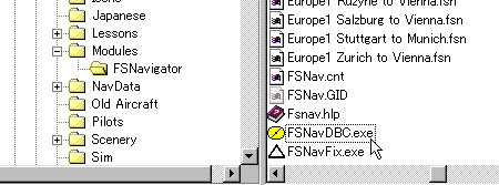 インストールが完了しますと、 FS98\Modules\FSNavigatorのフォルダができ、左のようになります。 この後に先ずデータベースを作成します。これはとても簡単です。 |