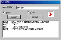 ICAOコードや空港名で検索するミニツールが便利が良さそうなのでちょっとご紹介します。(これは時々バージョンアップしています) Flightsim.comにありますwaicao.zipをダウンロードして解凍し、FS98のModulesフォルダにwaicao.dllとwaicao.txtの二つのファイルを入れるだけです。そして、FS98の画面のModulesをクリックしますとGetICAOが出ますのでそれをクリックしますと左のような画面が出ます。いつでもFS98の画面上で検索できます。 |