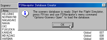 全部はいると左のメッセージが出て終了です。 これだけで準備はOKです。 新しいシーナリーを後から入れたら、そのデータを入れるために、この作業を繰り返せばよいだけです。 |