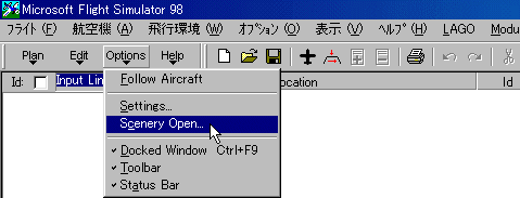 そこで、最初の一回目、又は新しいシーナリーを入れる度に、Option⇒Scenery Openとクリックして、 |