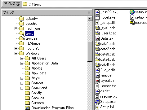 ダウンロードしたら圧縮ファイルをどこか空のフォルダに解凍します。 解凍すると左のようになりますので、Setup.exeをクリックします。 |