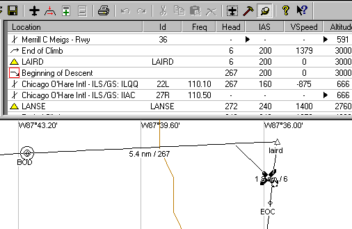 あらかじめかなりのフライトプランのサンプルが入っています。 Meigs Feeld.fsnを選択して開く。 このプランで選択されている航空機はセスナスカイレーンです。 ここではセスナスカイレーンで飛んでください。 |