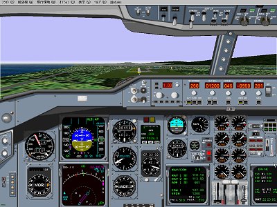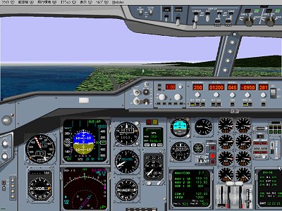 のパネルは、Peter Mess氏作です。 Flightsim.comにありますpnl_a310.zipのアップグレード版で、これは彼のページから直接ダウンロードしておりますPan_A3102.zipです。 Peter Mess氏のページのアドレスは、http://www.igr.nl/users/mess です。 このパネルの左下側のND画面がSharewareで、時々話題になっていますTop Avionics Gaugesというものです。 今までに登録している方はそのまま使えますが、登録したい方は簡単にできます。 興味のあります方は、ta747_13.zip をダウンロードして、Readme.txt をご覧になってください。 |