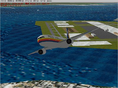 離陸して、ギアアップ、フラップアップ後、210ノット位でオートパイロットのスイッチオンにしますと、少し後に航空機は右旋回を始めます。 後は自動操縦が働きます。 羽田空港は、masa氏制作のシーナリーです。(RJTT04.zip) |