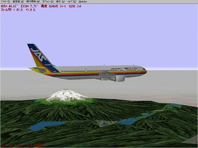 座間NDBをやや過ぎたところ。 富士のお山と富士五湖が見えます。 松本VORに向かっています。 松本を過ぎると、BOD のポイントに来て降下を始めますが、常に速度に注意します。常にオートパイロットの指示する速度以下になるように気を付け、調整します。 |