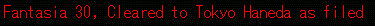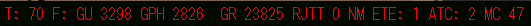 Ctrl+S でフライトステータスを表示します。 T: 経過時間 GU: 燃料消費量 GHP: 1時間あたりの燃料消費量 GR: 燃料残量 ID: (ここではRJTT)目的地の空港のIDと距離(NM)、見積もり時間(ETE) ATC: 現在のATCモード(テキストと音声) MC: アドベンチャー中にコンタクトした回数 |