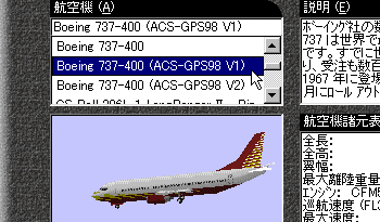 航空機の選択で3種類の737−400ができます。 そこで(V1)をクリックしてみますと、 |