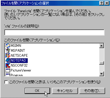 Panel.cfg を書き直します。始めての方はバックアップをとられておいた方が良いでしょう。 |