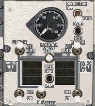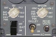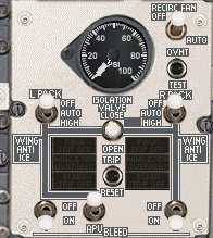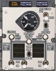 ・OVERHEAD PANEL:オーバーヘッドパネルの右側、ブリードエアーパネルの両方のエアーコンディショニングパックスイッチをOFFにします。