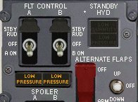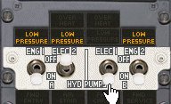 油圧パネルですが、今度は左側のHYDRAULIC A PUMP SWITCH をON