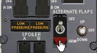 NOTE 一度地上に降りましたらこの位置をGRDにします。するとキャビンは完全に減圧されます。 私たちは、この操作を実際のパイロットがするようにここでシミュレートすることが出来ます。効果はもちろんなにもありませんが。 |
