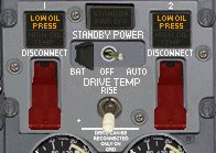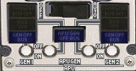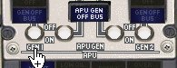 オーーバーヘッドパネルの二つのエンジンゼネレータースイッチ(このスイッチはGEN 1 ,GEN 2 と表示されています)に目を向けます。