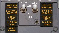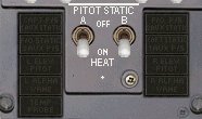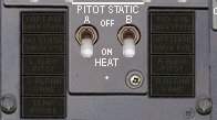 その下に二つの PITOT STATIC ヒートスイッチがあります。