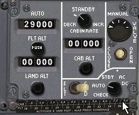 ALT(スタンバイキャビンレートノブのすぐ下のノブとインジケーターです): これはスタンバイキャビンアルティテュードにあわせます。