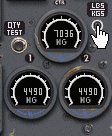 メインパネルの油圧系統のチェックです。右側のエンジン計器の一番下の二つの計器に注目します。