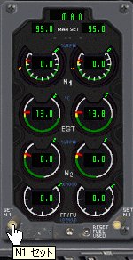 ・メインパネルのエンジン計器の左上から3番目の位置にあるN