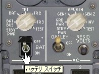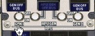 この二つのスイッチをONにします。すると上のGENOFF BUSのランプが消えます。