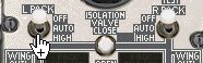・二つのエアーコンディショニングパックスイッチの間直ぐ下にあるのがアイソレーションバルブスイッチですが、このスイッチがAUTOポジションになっているのを確認します。