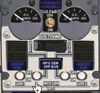 は地上でも空中でもいつでも働かすことが出来ます。(壊れていなければ)フライト中に発電器が故障したらAPUをONにしてオンラインします。さらに詳しく知りたければオペレーションマニュアルをご覧ください。