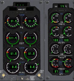 ここで総てのエンジン計器をチェックします。リーディングが総て緑のバンドの中に入っているのをチェックします。ただし、VIB(Vibration)だけはスラストレバーを押し上げたときに表示されてきます。