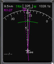 | 上の画像でRX-27Lでの速度と高度は210ノット、3400ftであることが判りました。 そのままで降下していきますとG/Sをキャプチャーするのは困難です。 そこで、RX-27Lでの高度を2500ft、速度を180ノットにもっていきたいので、D139L辺りでMCPのV/Sスイッチを押します。 スピードモードスイッチが点灯しIAS/MACHディスプレイには250ノットが表示されます。 又、FMAの表示が変わり、EHSI上にはグリーンのアーク(円弧)が表示されます。 10000ftを通過しましたらランディングライトを点灯します。 |