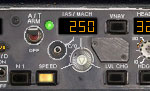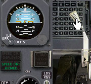 | BIGに到達しましたら、速度を落とすためにIAS/MACHディスプレイの値を180ノットにします。 それからグリーンのアークを見ながら高度を2500ftにセットします。 210ノット以下になりましたら、フラップを下げ始めます。 |