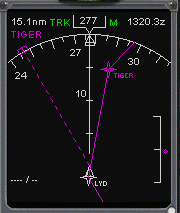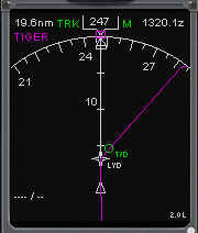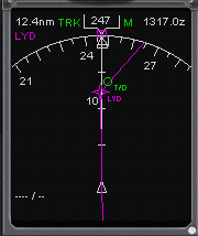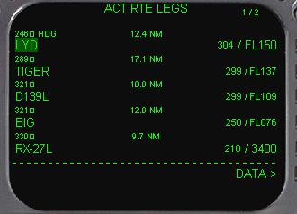 | LYDの直ぐ先に降下開始地点であるT/Dが見えてきます。 LEGページを見ますと、LYDを過ぎると降下を開始、続く各ウェイポイントでの高度が判ります。 |