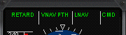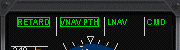 Bを押します。これによりCMD A、CMD Bの両方のライトが点灯します。 FMAにはホワイトのFLAREが表示されます。 (シングル又はデュアルオートパイロットモードでのアプローチ中、電波高度約27ftになりますとスロットルは自動的にアイドルまでリタードします。) |
