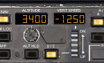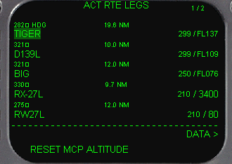| LYDあたりでMCPのアルティテュードセレクターでアルティテュードディスプレイに降下するターゲット高度を入力します。 入力しなければ、LYDに接近しますとLEGSページでMCPの高度をリセットせよとの指示(RESET