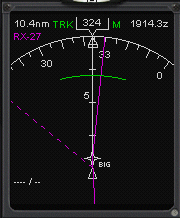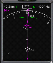 | 上の画像でRX-27Lでの速度と高度は210ノット、3400ftであることが判りました。 そのままで降下していきますとG/Sをキャプチャーするのは困難です。 そこで、RX-27Lでの高度を2500ft、速度を180ノット以下にもっていきたいので、D139L辺りでMCPのV/Sスイッチを押します。 スピードモードスイッチが点灯しIAS/MACHディスプレイには250ノットが表示されます。 又、FMAの表示が変わり、EHSI上にはグリーンのアーク(円弧)が表示されます。 10000ftを通過しましたらランディングライトを点灯します。 |