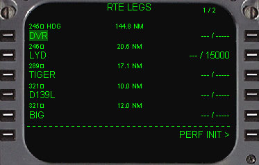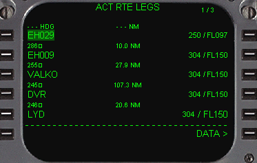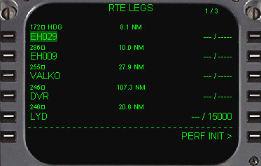 | RTE LEGSページを見ますと、最初のウェイポイントはDVRということが判ります。 そこでここでスタンダードVALKOデパーチャーを使用するためにマニュアルでこれから入力します。 |