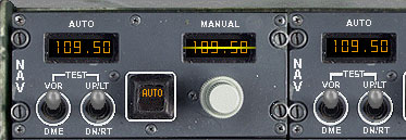 | センターラジオコンソールを開き、両方のNAVラジオをオートにします。 着陸はILSアプローチを使用しますので、 |