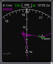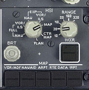 | センターコンソールを開き、EHSIのモードをMAPにし、レンジを20nmにします。 | ![]() |