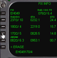 すると、FIXから現在の航空機の位置までのラジアルと距離が表示されます。RAD/DIS FR